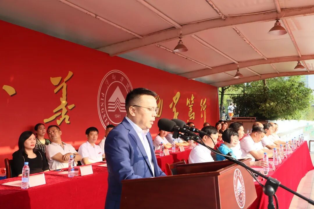 9月29日上午,我校在第一田径场举行2022级新生开学典礼。萍乡学院泉州校友会名誉会长、泉州足康鞋业有限公司董事长叶涛参加开学典礼并作主题发言。