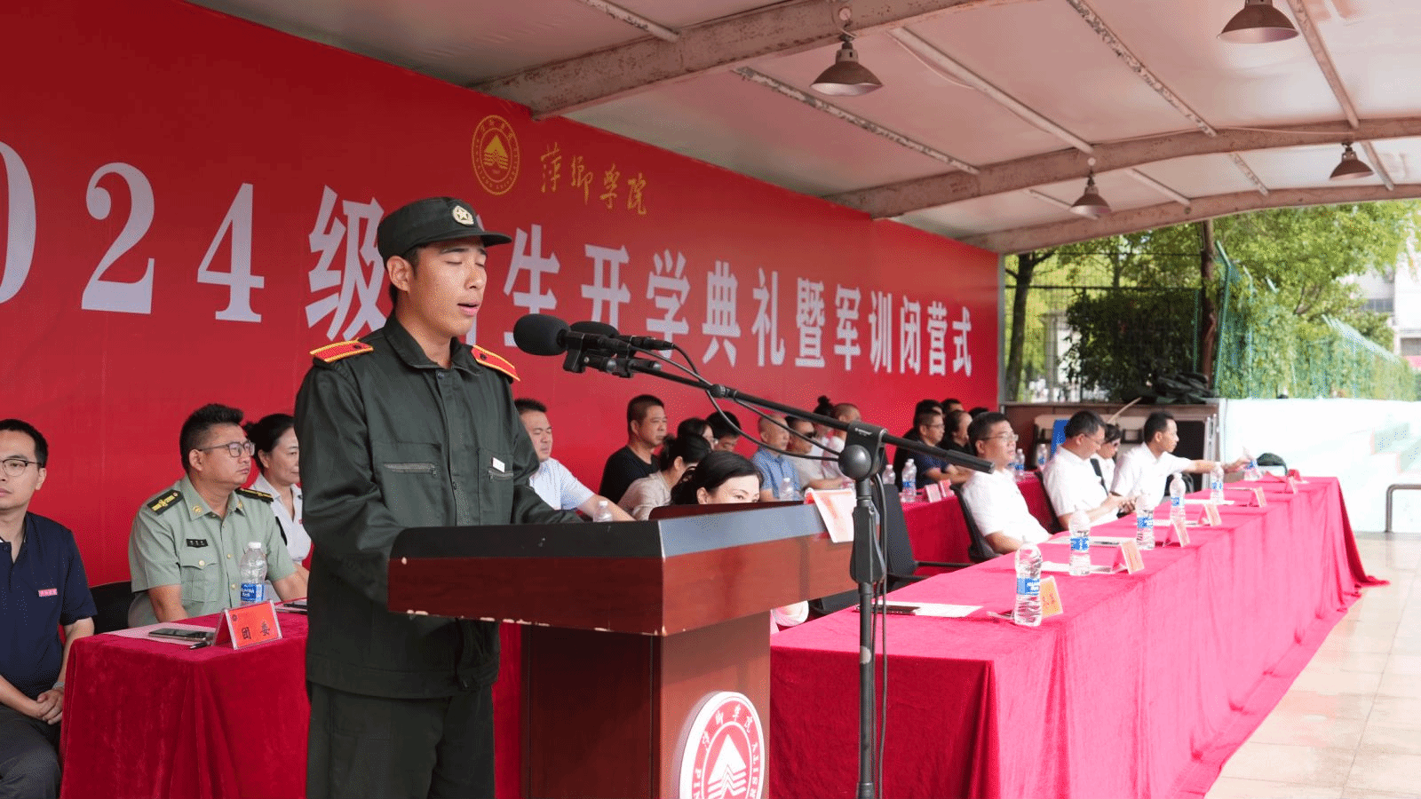 新生代表人文与传媒学院罗伟同学代表全体新生向老师、教官、学长学姐们致以最衷心的感谢。在今后的大学生活中,将以军训为起点,继续发扬艰苦奋斗、团结协作的精神,以饱满的热情、坚定的信念,在萍乡学院这片知识的沃土里茁壮成长,为实现自己的人生梦想而努力奋斗!