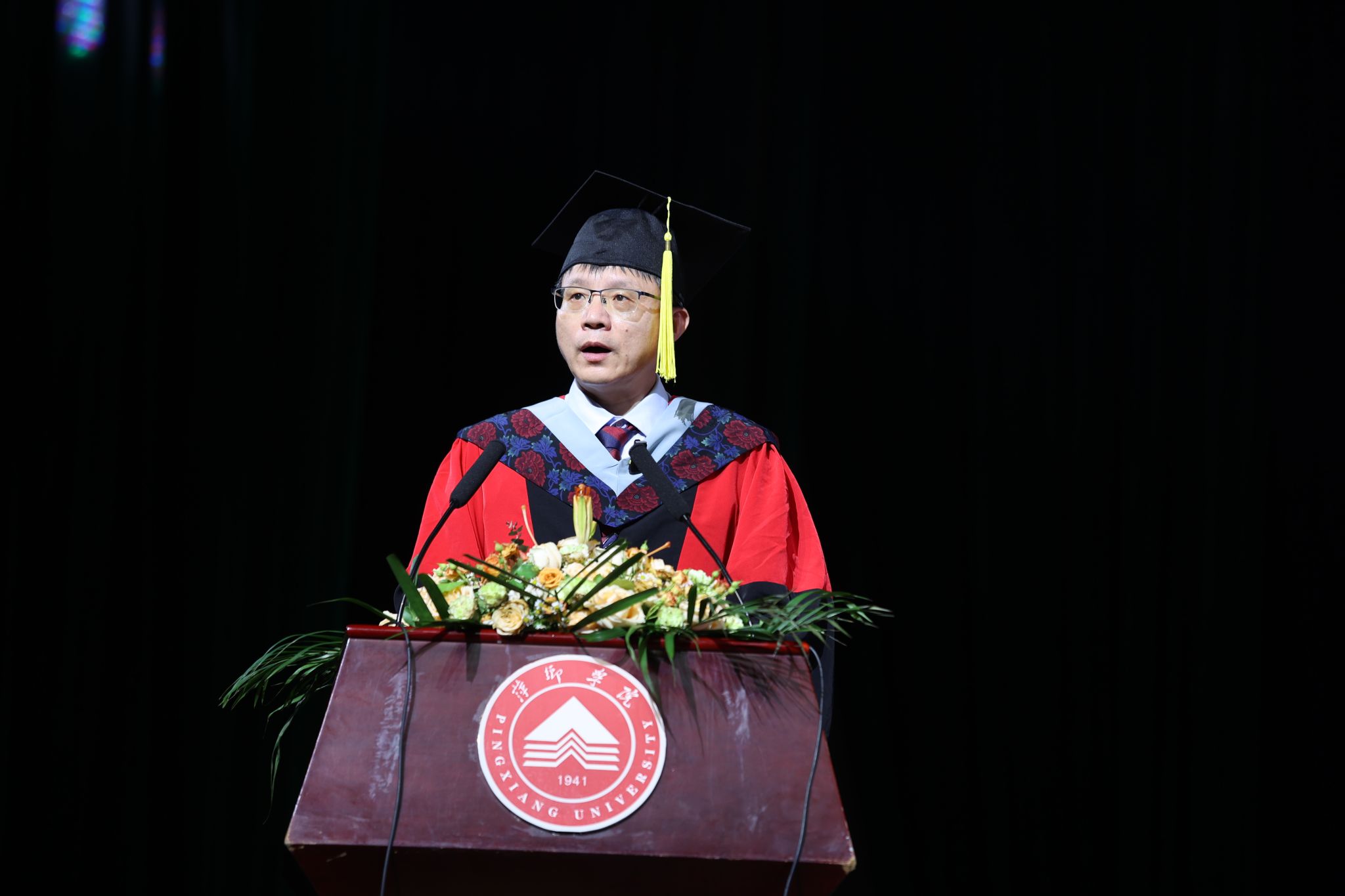 “又是一年毕业季,又到一朝离别时。”校长刘林芽代表学校,向全体2024届毕业生奋力拼搏完成学业表示热烈的祝贺。他深情地说道:“在萍院的四年里,你们经过深入地学习、研究和实践,培养求真务实的精神,锻炼创新创造的能力,在孜孜以求中收获成长。你们见证了母校的快速发展,在教室、实验室、图书馆和运动场上留下奋斗拼搏的身影,校园里的花草树木都承载着大家的青春记忆。你们亲历了世界局势的风云变幻,感受技术革新带来的深远影响,于磨砺中丰富人生阅历,在“厚德至善,励学笃行”的校训指引下明确发展方向、探求前行道路。”