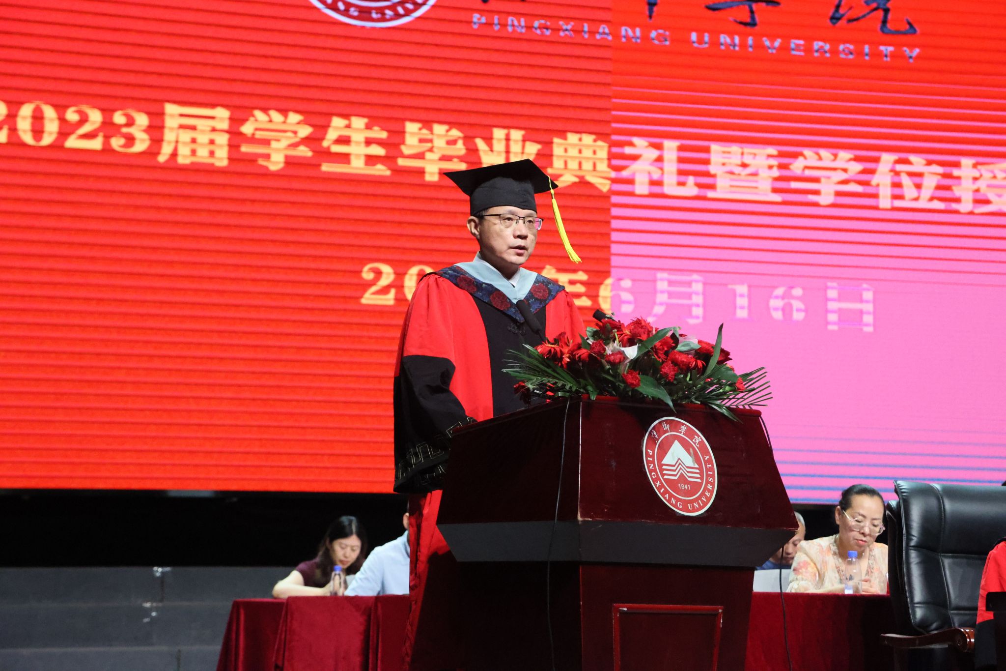 “在这美好的日子里,我和你们一样倍感温暖、倍受鼓舞、充满喜悦、充满期待。”校长刘林芽代表学校,向全体2023届毕业生奋力拼搏完成学业表示热烈的祝贺。他深情地说道:“初入萍院,你们青涩懵懂、追逐梦想、憧憬未来。四年来,你们在萍院求知问道,用学识和才干成就自己、用汗水和泪水收获成长、用奋斗唱响青春赞歌,你们在萍院读过的书、刷过的题、熬过的夜、流过的汗都一一记录着你们的成长。”