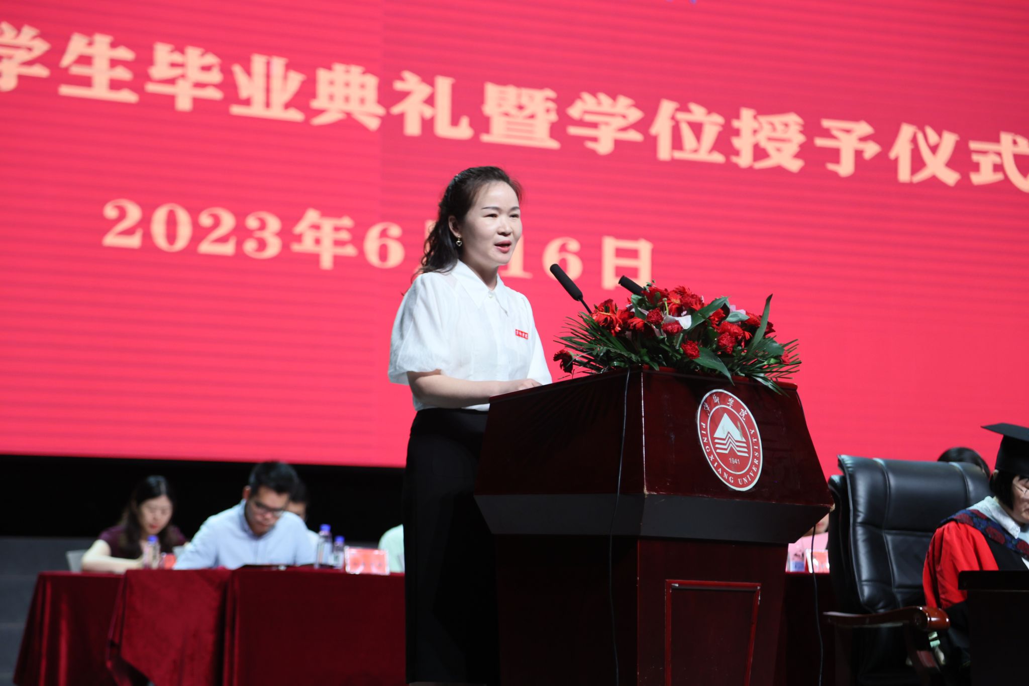 典礼上,教师代表张园园、校友代表王祖德、毕业生代表魏亚琼、非毕业生代表管浩分别发言,抒发了感恩母校的真挚情感,表达了对毕业生们的诚挚祝福。