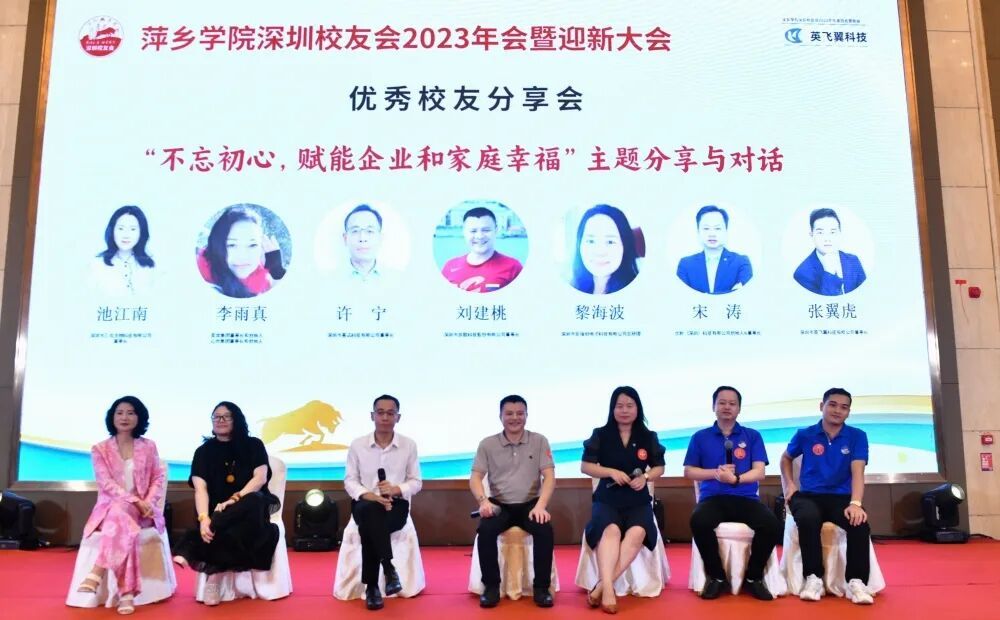 大会上,深圳校友会会长、乐虾(深圳)科技有限公司董事长宋涛校友,深圳校友会名誉会长、深圳市萍乡商会会长孟西校友,深圳校友会副会长、深圳市英飞翼科技有限公司董事长张翼虎校友,深圳高企联轮值会长、南昌航空大学校友总会荣誉会长郑平先生分别致辞,新成员代表余美玲校友作了发言。深圳校友会执行会长、深圳市鑫海旺科技有限公司总经理钟宜锋校友作年度工作报告,深圳校友会秘书长、深圳市迈腾飞科技有限公司总经理徐利民校友作年度秘书工作报告,深圳校友会财务总监、深圳市森康达集团董事长周海林校友作年度财务报告,深圳校友会监事长、深圳市特维克科技有限公司总经理付志兵校友作年度监事工作报告。奕龙集团董事长李雨真校友、深圳市三也生物科技有限公司董事长池江南校友、深圳市安瑞创电子科技有限公司总经理黎海波校友、深圳市喜达科技有限公司董事长许宁校友、深圳市莎朗科技股份有限公司董事长刘建桃校友、乐虾(深圳)科技有限公司董事长宋涛校友、深圳市英飞翼科技有限公司董事长张翼虎校友参加了“不忘初心,赋能企业和家庭幸福”主题分享与对话活动。大会现场,还举行了深圳校友会会员授牌仪式、总冠名商授牌仪式,并举行了丰富多彩的文艺表演活动。