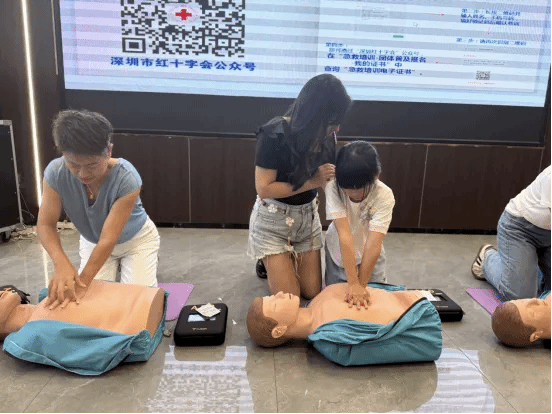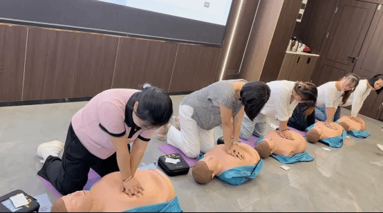 培训内容聚焦实用急救技能:从心肺复苏及AED体外除颤仪的规范操作,到儿童与成人异物吞入的急救方法;从落水后的自救与互救技巧,到被毒蛇咬伤的紧急处理流程,再到窒息、中风、心梗、低血糖等常见急症的应对要点,每一项都紧扣生活中可能遇到的突发场景。