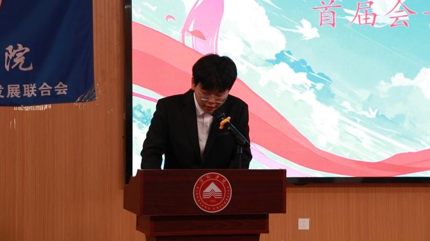萍乡学院学生委员会执行主席朱斯宸代表学生组织致贺词。